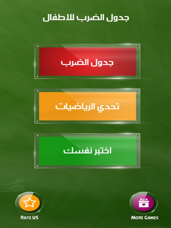 جدول الضرب - تدريب واختبار لعبة تحدي واختبار ممتعة مفيدة في تعلم وحفظ جدول الضرب، أسهل وأفضل طريقة في تعليم وتحفيط جدول الضرب للاطفال بطريقة سهلة ومتدرجة، تضم اللعبة مستويين: المستوى الأول الذي يتضمن جدول ضرب الأعداد من 0 إلى 5، والمستوى الثاني الذي يتضمن جدول ضرب الأعداد من 6 إلى 10، إضافة إلى اختبار نهائي في كل مستوى لتقويم درجة تحكم المتعلم في حفظ جدول الضرب وإتقان الحساب الذهني لمختلف الجذاءات التي يتضمنها جدول الضرب في مقرر الرياضيات.