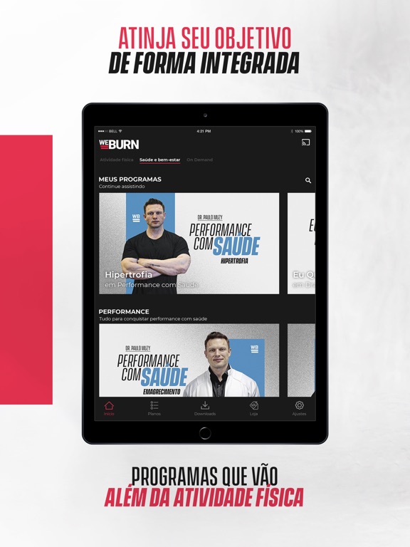 Baixe o app e conheça o Weburn, a mais completa plataforma online de fitness, saúde e bem-estar do Brasil! Veja nossas dicas de alimentação saudável e faça exercício em casa com nossas opções de treino funcional, HIIT, corrida, aula de dança, aula de yoga e mais. Treine com os melhores professores e tenha aulas com profissionais como Paulo Muzy, Thiago Pugliesi e Camila Sachs para atingir seu objetivo, seja emagrecimento ou hipertrofia!