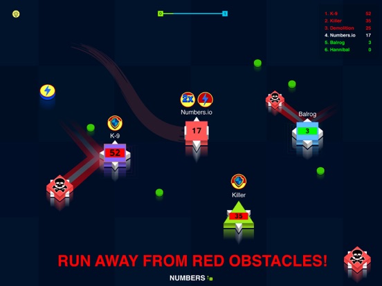 New addictive io game. Compete with players around the world. Unlock new characters! Kill smaller numbers to grow! Avoid bigger numbers! Upgrade your power ups! Collect green dots to increase your number. Use boost to speed up! Run away from red obstacles!