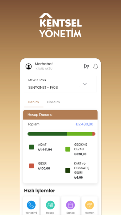 Kentsel Yönetim Site, Ofis ve Avm Sakinleri mobil uygulaması üzerinden yapabileceğiniz işlemler;