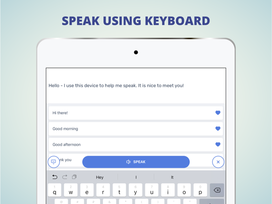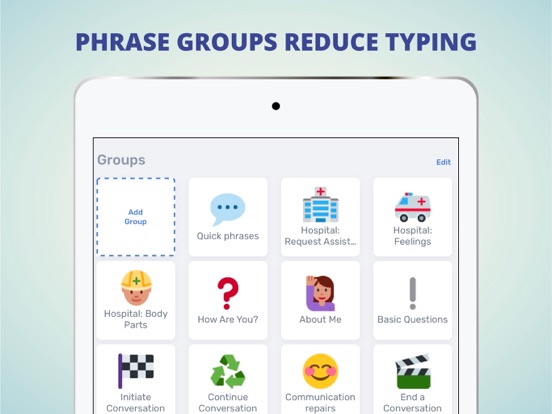 AAC Communicator contains a growing list of basic pre-programmed phrases such “How are you?” which speed up communication. In addition, recent phrases are easily accessible should a user need to repeat something they have said. Additional phrases can also be saved to Favorites by the user for easy access.