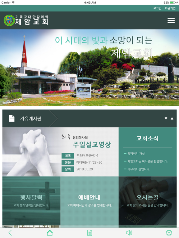 * 100% 연동형 앱 : 홈페이지에 등록된 내용, 게시물, 설교영상, 사진 등의 콘텐츠를 앱과 100% 연동하여 실시간으로 앱을 통해 확인할 수 있습니다.