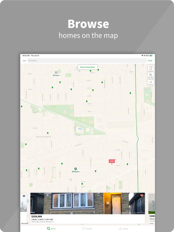 • Use the swipe view to easily find homes for sale while also looking at where they are located on the map.