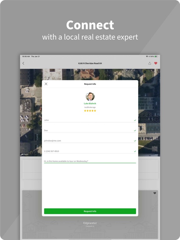 • Contact a licensed real estate agent who is a local expert in the area with the touch of a button. You can schedule a time to view a home or request more information.