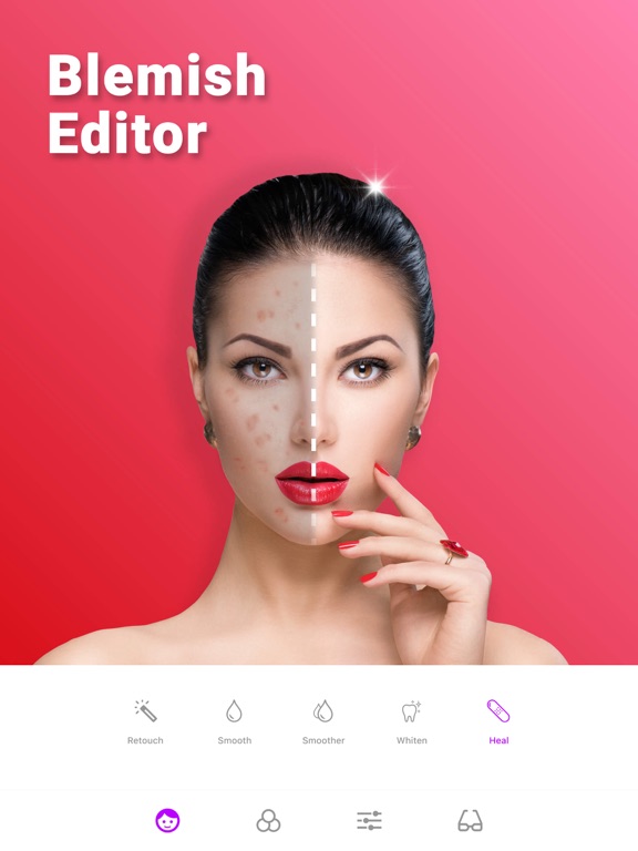 All-in-one makeup editor to remove blemish easily, one-tap retouch, teeth whitening & reshape face!