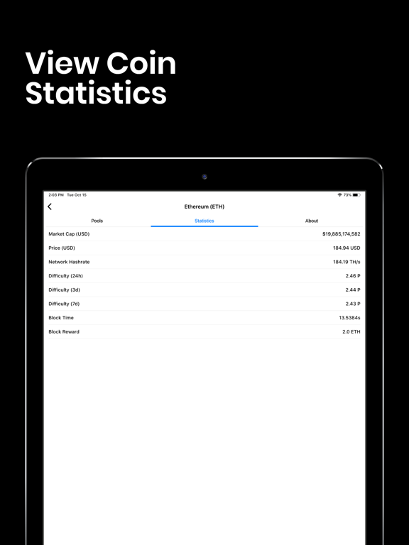 - view payment scheme, fees, server locations, connection urls, social media and even other apps that support a pool