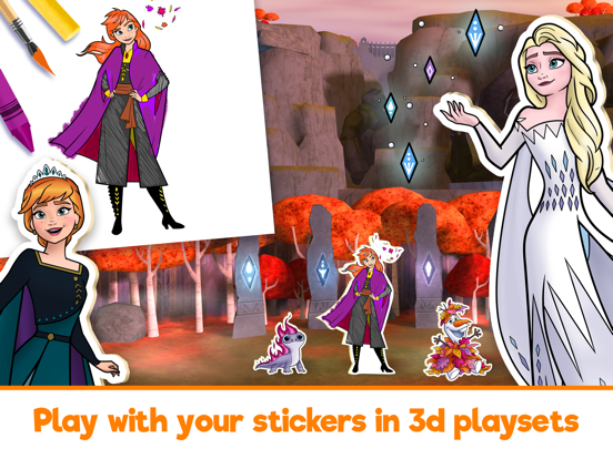 In Disney Coloring World, kids get creative with their favorite Disney and Pixar characters - and there are hundreds to choose from! Explore an ever-expanding universe of over 1000 stickers; from Mickey and Minnie Mouse, to Frozen’s Anna and Elsa, from the cast of the Lion King and Toy Story to an array of heroines, heroes, princesses, side-kicks, villains and so many more.