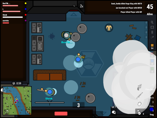 2D BATTLE ROYALE - It's Battle Royale packed into an intense 3-5 minute experience. No lobbies, no lengthy drop sequences. In surviv.io, you're always in the fight!