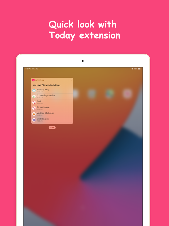 For complete access to all WeekPlan features, App will need permission to schedule local Notifications for time reminders for your habits.
