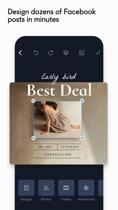 Upload your own images and videos to Crello and use them to customize templates or create something unique and truly yours. Once it’s finished, share your design right from the app.
