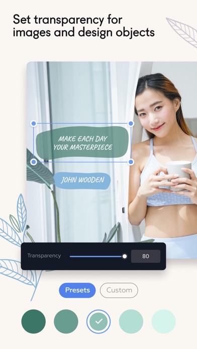 With 20 design formats and the ability to create designs of custom sizes, you have infinite possibilities. We keep working on adding more formats to the app.