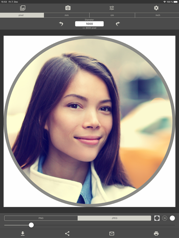 1. Enter the desired diameter of the photo in pixels, millimeters, centimeters or inches