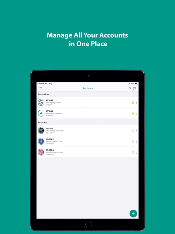 You can add and manage unlimited 2FA accounts in the app. We support the majority of the multi-factor authentication accounts with new providers being added regularly. Any site offering two-step authentication via Google Authenticator works flawlessly with our app. Some service not working for you? Contact our support!