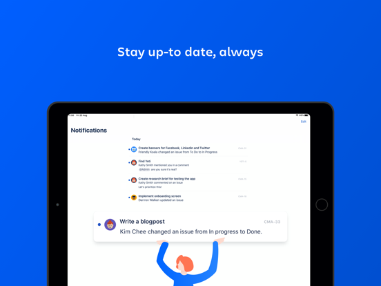 The Jira Server app lets teams who use Jira collaborate and give updates from anywhere.