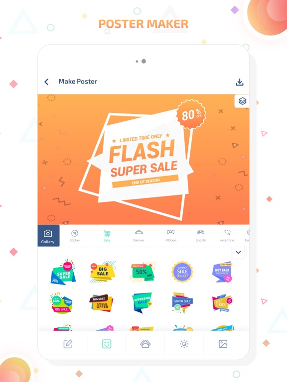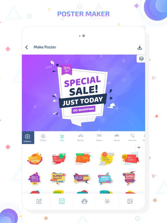 Poster Maker helps you to create posters, Flayer, text on photo, write memes on pictures and make social media banners. Also create day’s celebration, quotes, love’s albums, greetings card, invitation card, sales, offers and advertising photos and much more.
