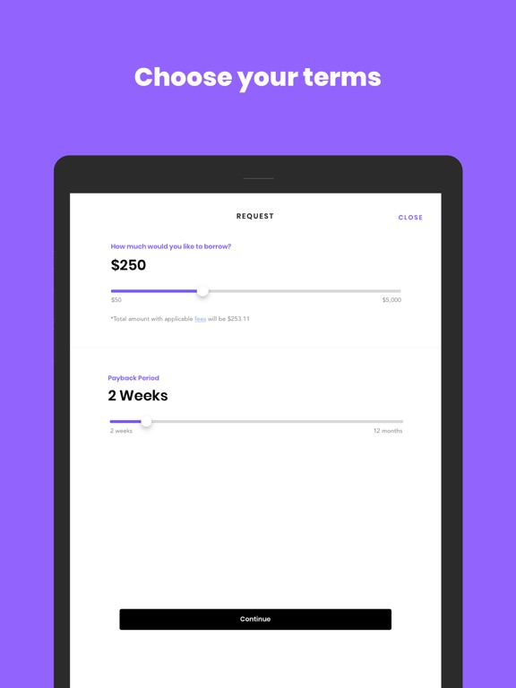 Since our app is not directly involved in the lending decision, we cannot guarantee the interest rate borrowers will be offered. All borrowers have the option to request a loan on our platform for up to 12 month repayment period, paid in installments. Lenders can offer loans for a minimum of 3% APR based on the credit score and their own criteria. The lending decision is based on multiple factors viewable on our app, including credit, income, and cash flow analysis.
