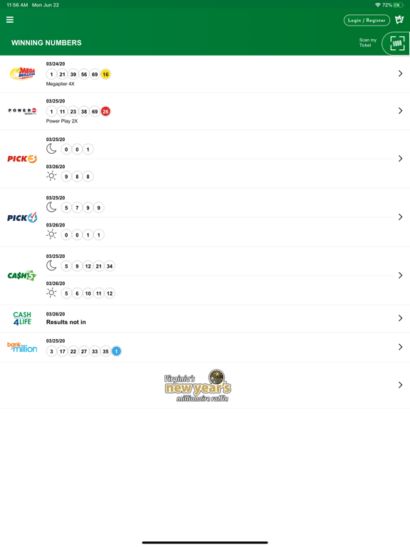 Use the official Virginia Lottery app to see the latest jackpot amounts, check winning numbers, enter eXTRA Chances and more – all right from your phone! Scan any draw game or Scratcher ticket and find out if it’s a winner instantly, and learn about our newest Scratchers as soon as they’re released. Create or log into your Virginia Lottery account to save your favorite numbers, and scan your non-winning tickets to enter eXTRA Chances and other second chance promotions. Pick your numbers to create a digital playslip, and find nearby Virginia Lottery retailers to purchase your tickets.