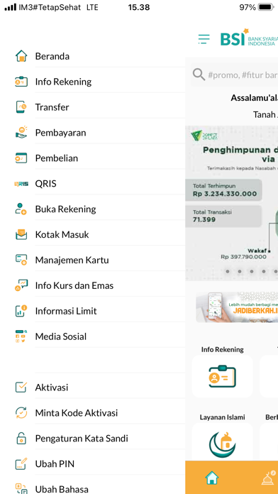 • Pembayaran (PLN, telepon/HP, akademik, institusi, tiket, asuransi, zakat/infaq,