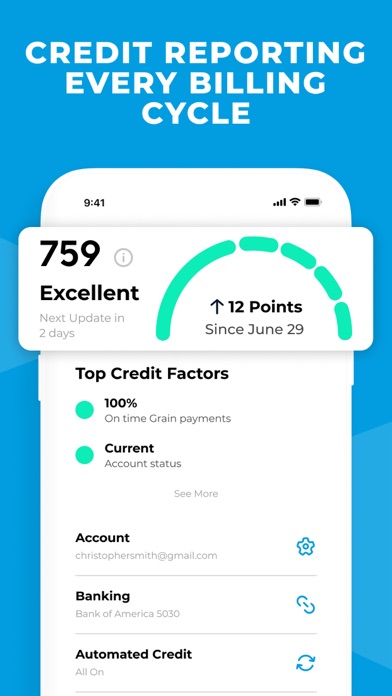 • Credit reporting - every month, we report your account activity to all three credit bureaus.