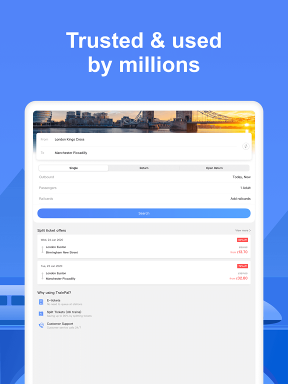 • Split-ticketing: TrainPal can help travellers save up to 95.25% of the original rail fare in the UK. In addition to the traditional split-ticketing features, TrainPal also offers a flexible split-ticketing option to help travellers save even more.