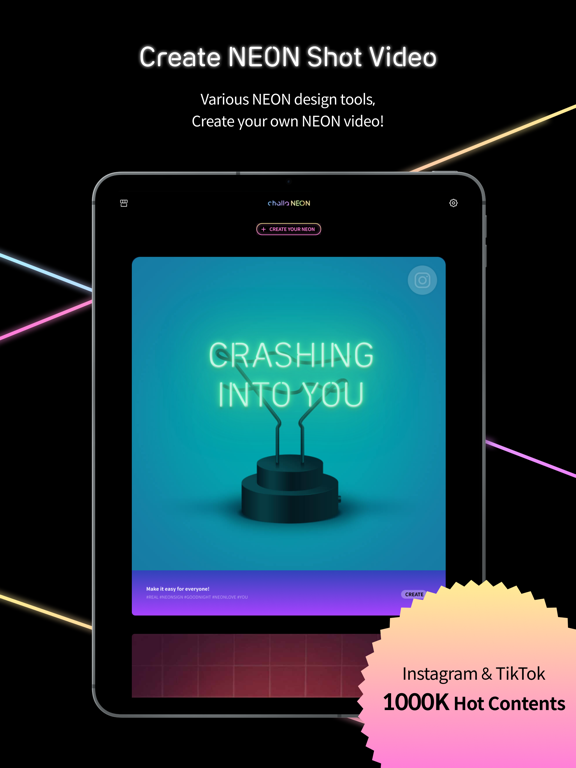 Add colorful NEON design templates and NEON text and icons onto your photos and videos.