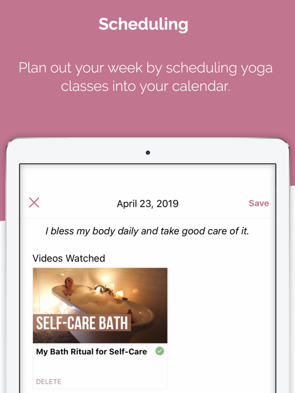 The in-app calendar allows you to schedule your yoga classes ahead of time and stay accountable throughout the week! When you do a yoga class it will automatically log it in your calendar so you can track your progress and reach your goals.