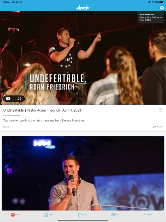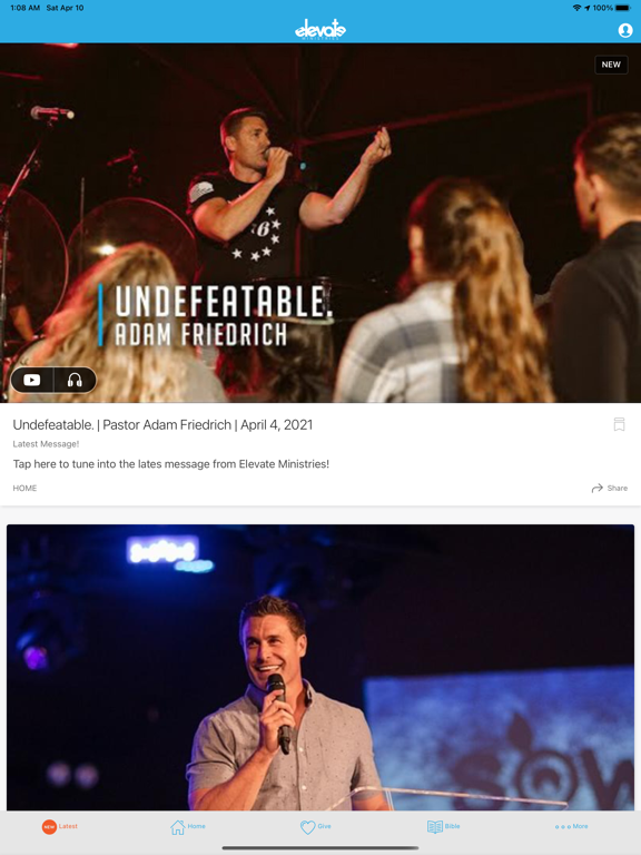 The Elevate App is a useful tool to stay connected to what’s going on in the life of our church as well as watch and listen to powerful and impacting messages from Adam and Carrie Friedrich, our Elevate Pastors and team, and also guest speakers from around the world.