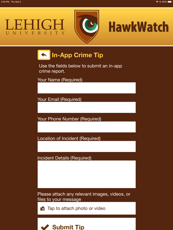 - Tip Reporting: Multiple ways to report a safety/security concern directly to Lehigh University security.