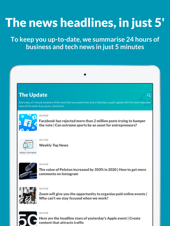 - Update your skills and your training: every week one new content to read or listen to in just 15 minutes.