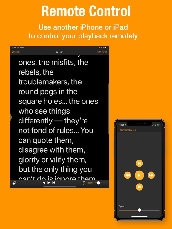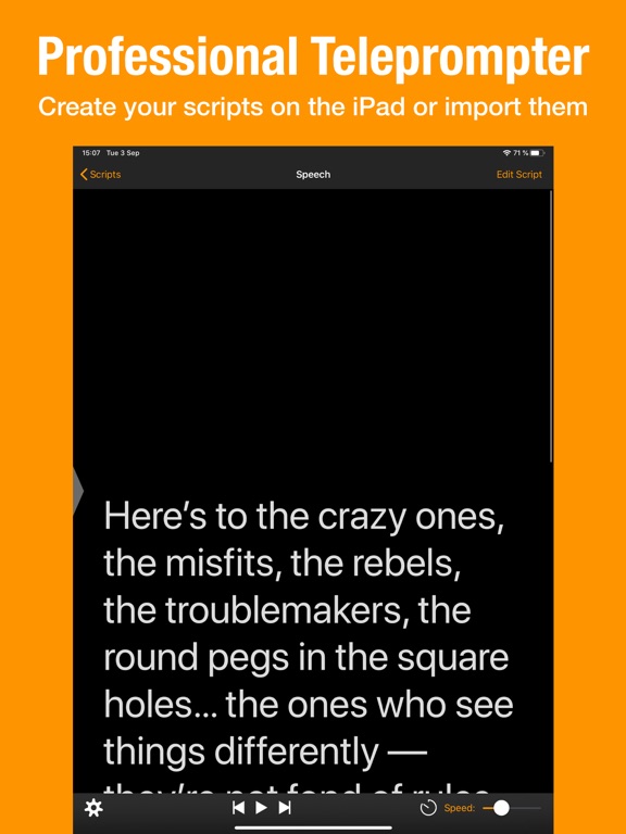 With this app, you can read your script easily without worrying about forgetting the next line. Teleprompter works well on iPhone, iPad and iPod touch too!