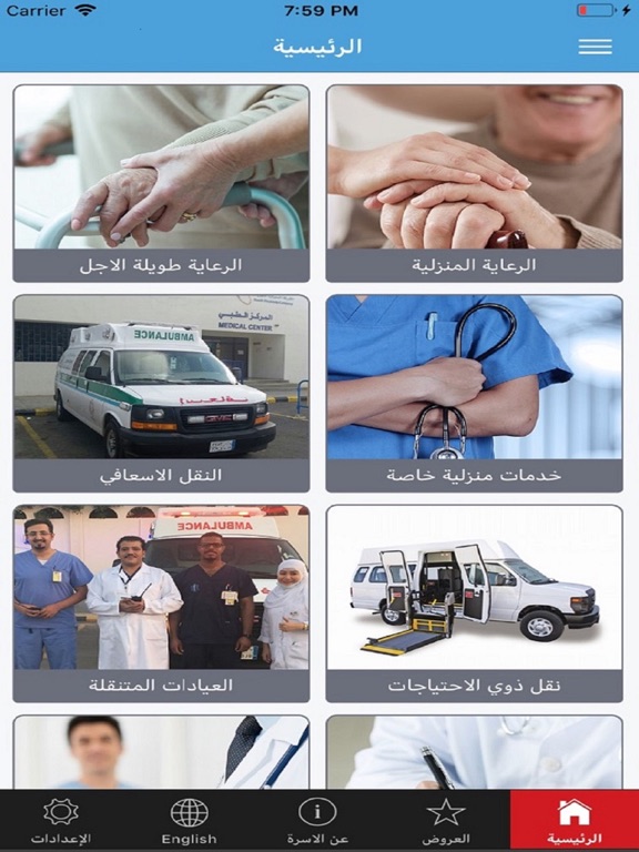 The application of Alosrah medical company is the first and best to connect patients with the services of Alosrah medical company , especially the home health care and emergency transportation services.