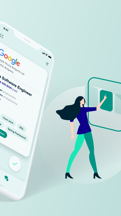 Ще виждаш само филтрирани резултати - обяви за работа, които отговарят на твоите специфично зададени критерии, можеш да реагираш на тях с едно приплъзване на палеца, сещаш се.