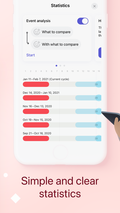 - Set up individual monthly calendars, and edit past data about ovulation.