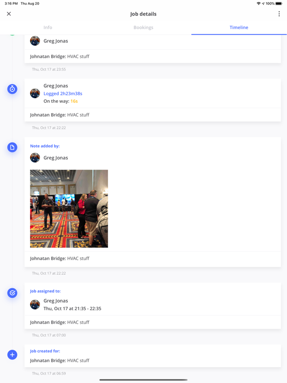 Check past and future bookings, add notes, photos and do your job scheduling with ease.