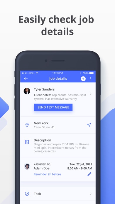 Manage your and your employee’s schedules and assign jobs and tasks.