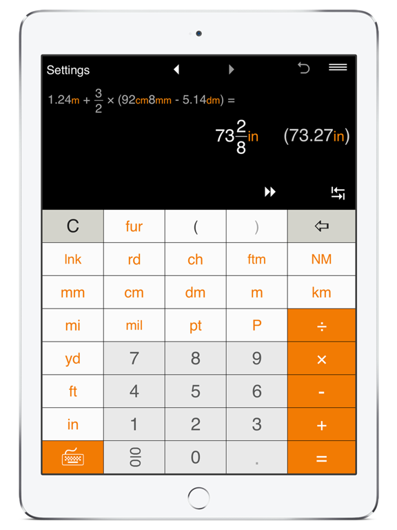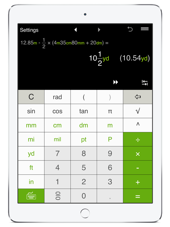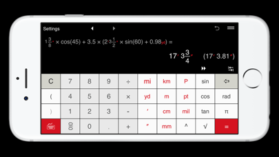 It addition to extensive unit conversion and calculation options, UNITS MASTER offers standard features such as basic operations, calculation with parentheses, calculations with fractions and decimals, exponents, square root, trigonometric functions, etc.