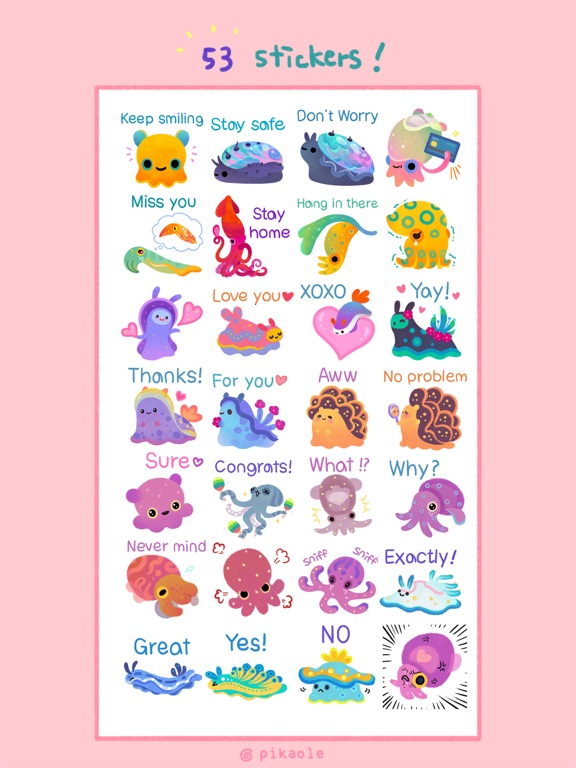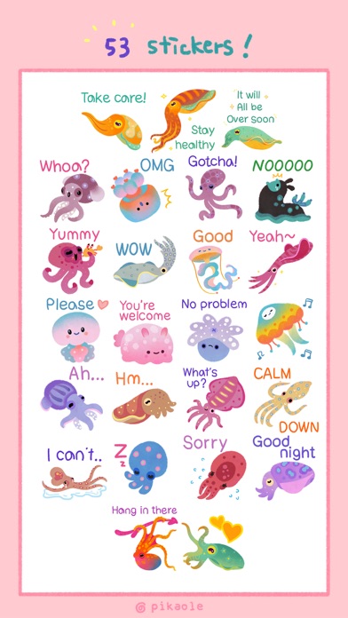 53 kawaii marine life mollusk sticker pack. (Cuttlefish, Octopus, squid, sea slug, jelly fish(Cnidaria)) Have fun! twitter / instagram : @pikaole