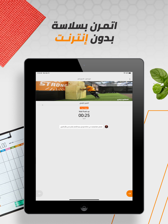 ٣. بدون انترنت: شاهد جميع التمارين بالفيديو والإرشاد الصوتي، وبدون الحاجة إلى الاتصال بالانترنت.