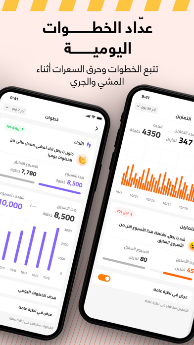 - تابع تقدمك: بروفايلك الشخصي يتم تحديثه باستمرار بإحصائيات لمتابعة تقدمك خطوة بخطوة، وتحفيزك للمواظبة على برنامجك.