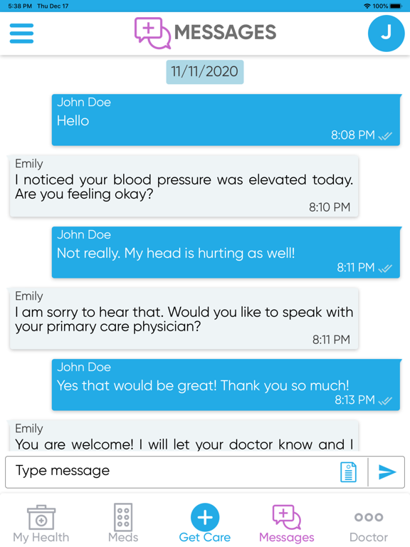 My Remote Checkup app accesses your data from Apple HealthKit and uploads it to your account to provide your care team with a comprehensive view into your health.
