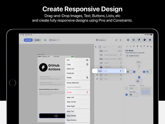 - Use Pins and Advanced Constraints to create Responsive designs for every iPhone Device.