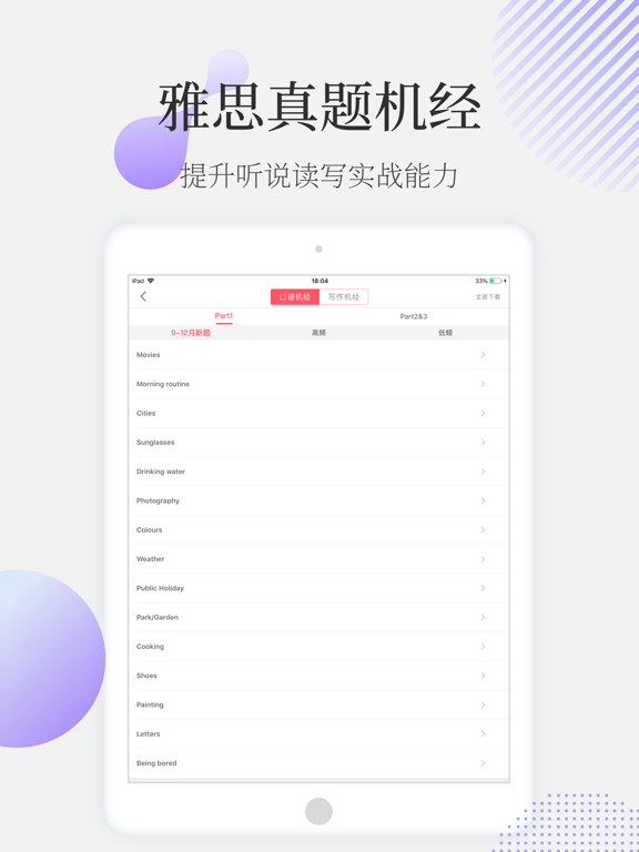 高命中率口语机经收录,精选雅思口语真题,定义考频,分类练习,定期更新