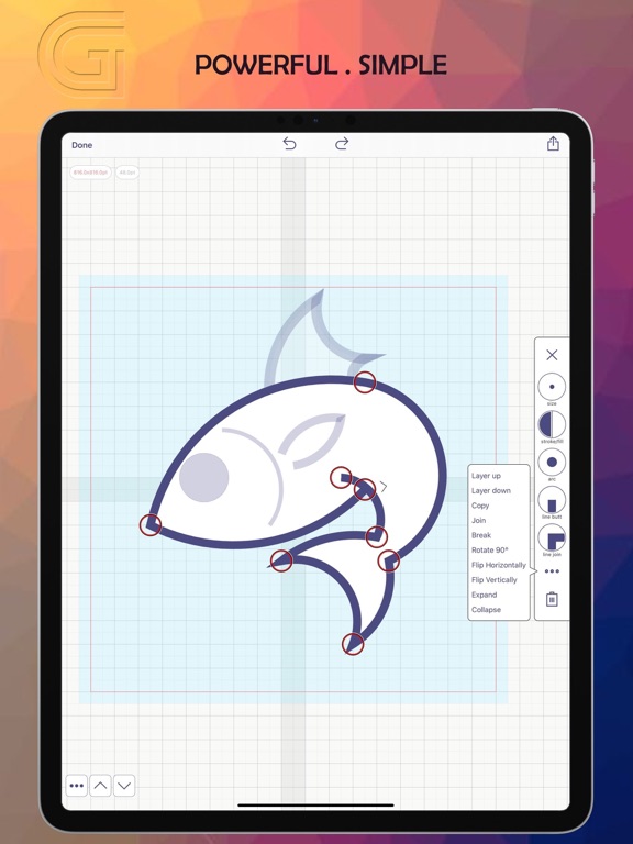 It's great for creating any type of art that requires perfect symmetry such as icons and logos. And it works great with the Apple Pencil.