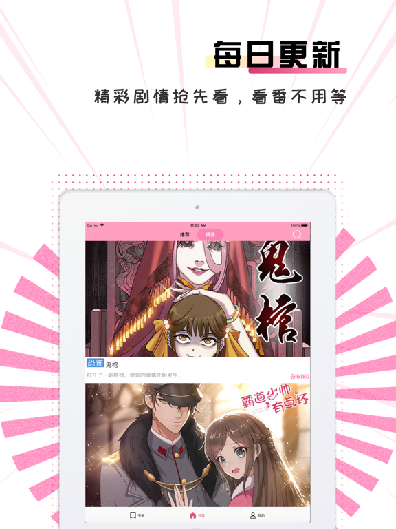 覆盖全网热门人气漫画,你想看的全都有,畅游二次元世界。海量热门小说改编漫画《妖神记》《男神请深爱》《我的男仆老公》《总裁撩妻100式》《谢文东》《鬼棺》等。