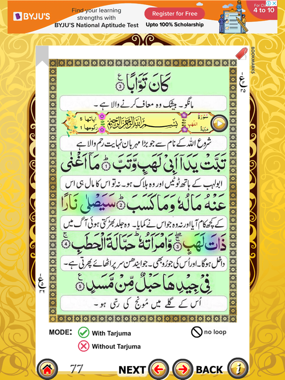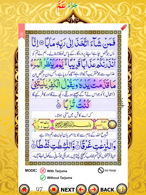 The Holy Quran is divided into 30 chapters also known as thirty PARA's. In this app 30 PARA which is also known as AMMA PARA is presented with Tarjuma.
