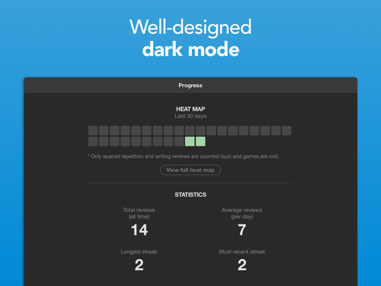 This app focuses on helping you to build and learn languages easily using popular learning methods, such as spaced repetition system (SRS), gamification, writing, quiz and so on. Please see feature list below.