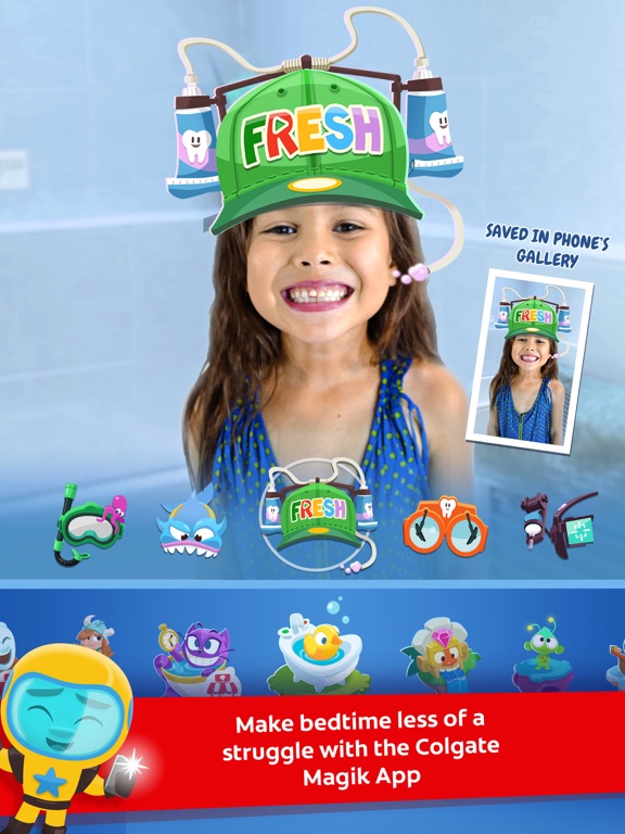 The Colgate Magik app will unlock your Colgate Magik toothbrush kit. The app uses Augmented Reality to give your children a fun brand new brushing experience, turning the Colgate Magik manual 5+ toothbrush into a connected smart toothbrush.