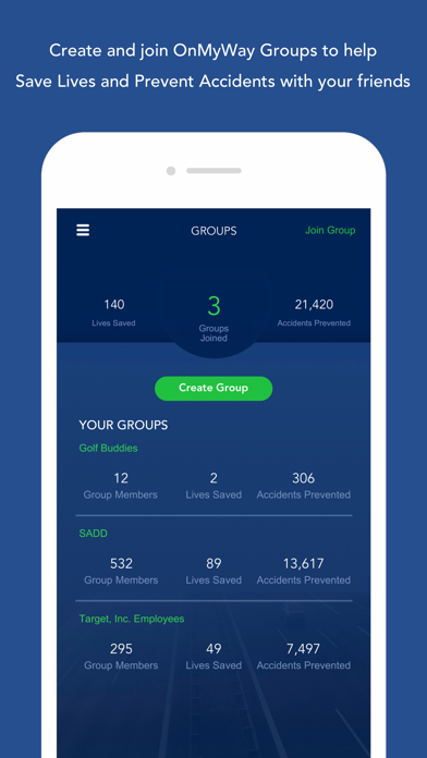 • Join and create as many Groups as you like. It’s all about safer driving!