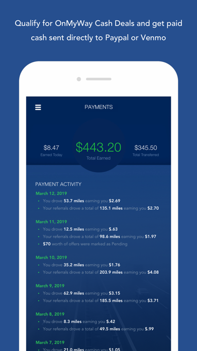 • Earn OnMyWay Cash for every referral that signs up through your custom link.