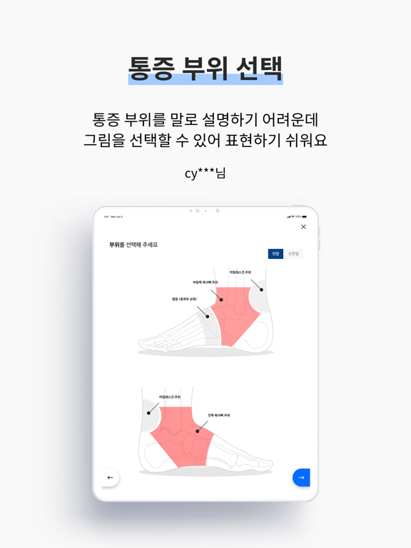 어디아파에서 사용자 중심의 UX개편을 통해 통증부위와 증상 선택 후,
